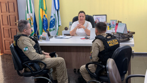 Prefeita de Ibema recebe representantes da Polícia Militar para tratar de segurança pública.